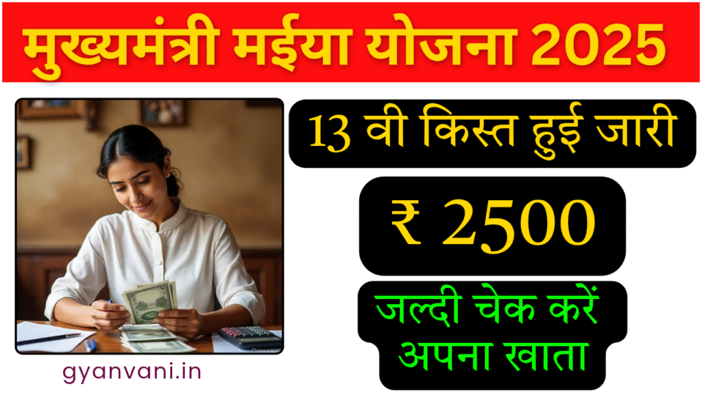 मुख्यमंत्री मैया सम्मान योजना 2025: पात्रता, आवेदन, लाभ, 13वीं किस्त की पूरी जानकारी Read More »