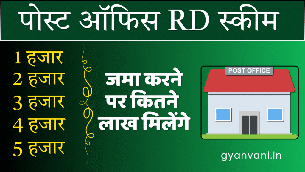पोस्ट ऑफिस RD स्कीम में हर महीने 1,000 से 5,000 रुपये तक जमा करने पर 5 साल बाद कितनी रकम मिलेगी, इसकी पूरी जानकारी नीचे दी गई है। पोस्ट ऑफिस RD स्कीम क्या है?   RD (Recurring Deposit) स्कीम के तहत खाताधारक हर महीने एक fix राशि (कम-से-कम ₹100) अपने पोस्ट ऑफिस खाते में जमा